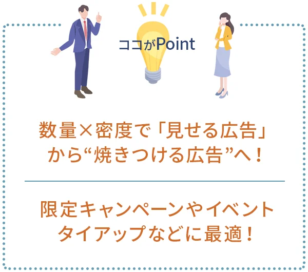 通常広告枠ではないスペースを活用して、ポスターを一斉に掲出できる短期集中型メディアです。